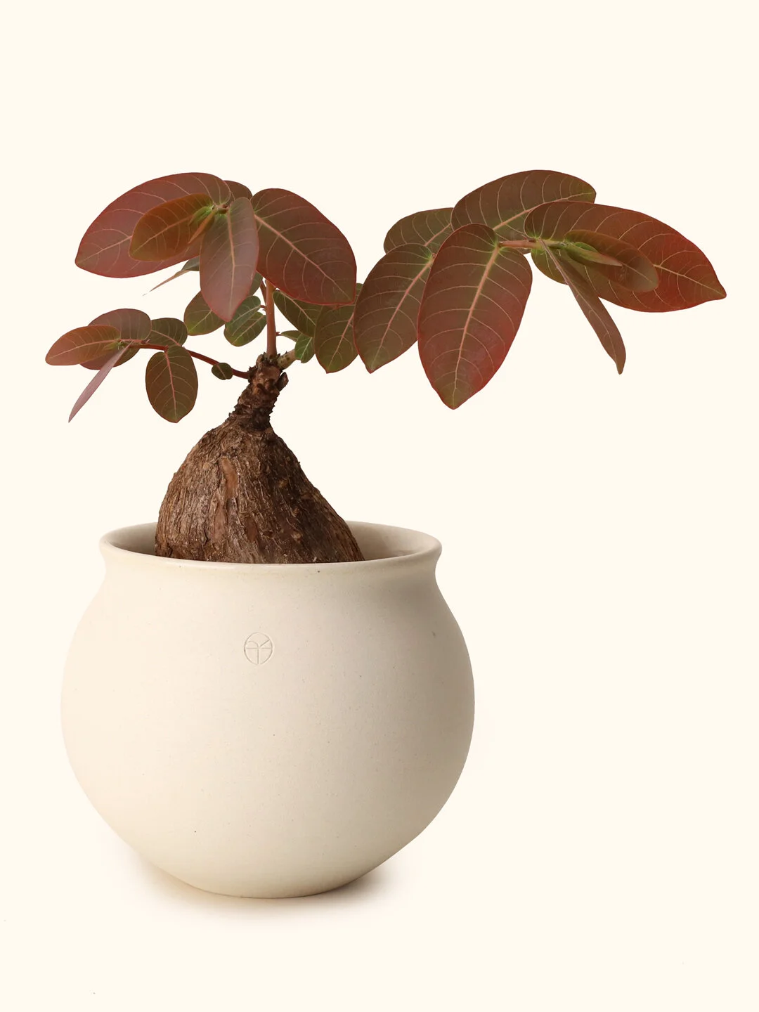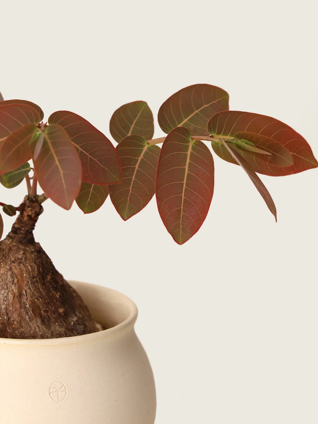 A caudiciform plant with reddish and green leaves. Interestingly, the leaves fold up in pairs during the evening. Keep away from children and pets.