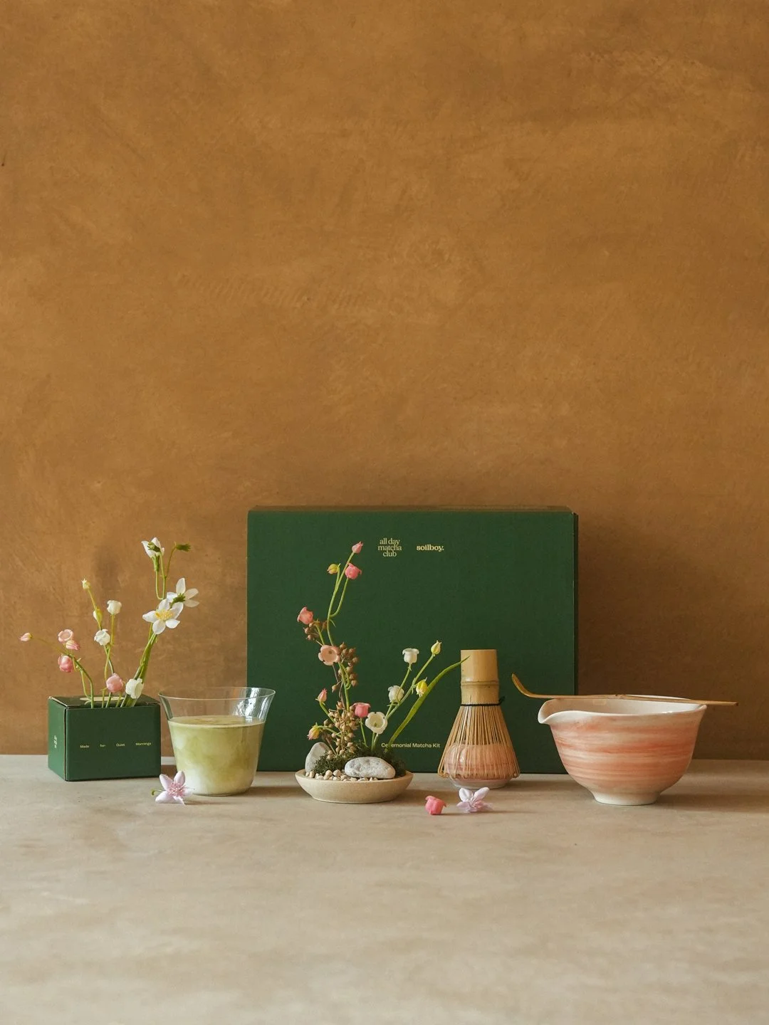 Each pair will take home one preserved garden arrangement and one matcha set.